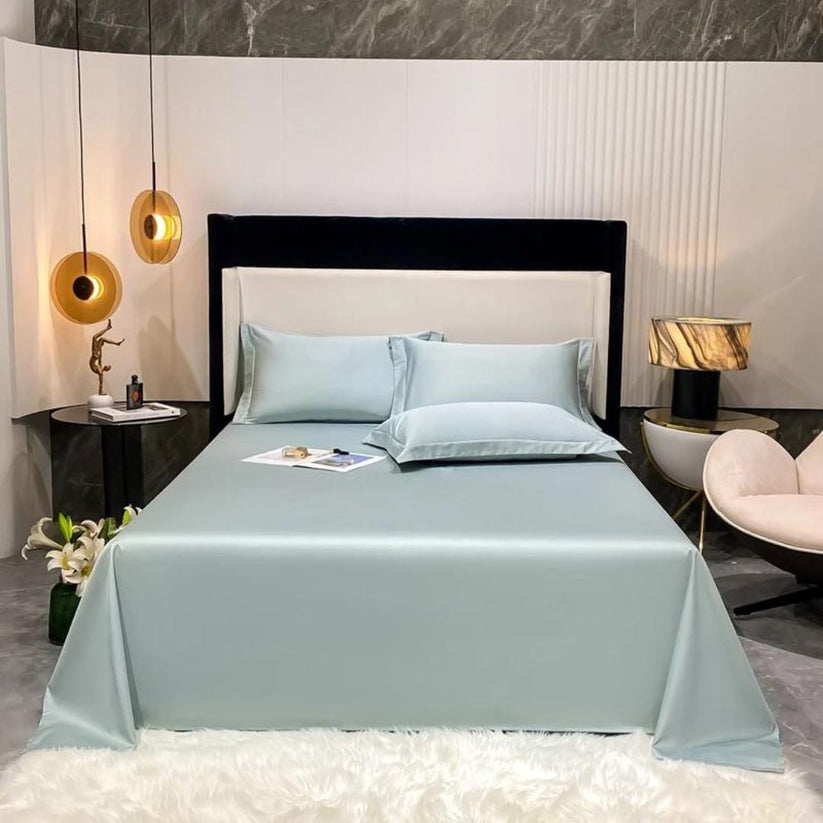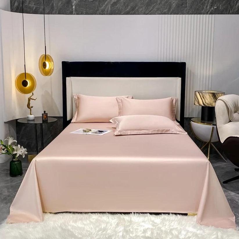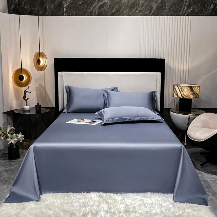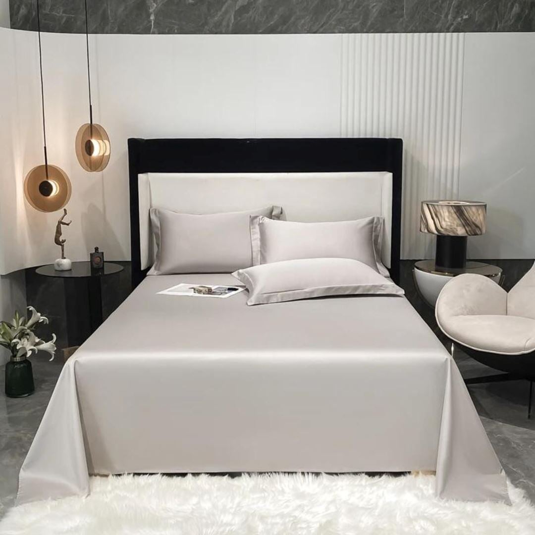 Permita-se envolver-se na sensação sedosa e suave do algodão egípcio premium. Este conjunto inclui 1 lençol de elástico, 1 lençol plano e 2 fronhas, oferecendo um pacote completo de luxo para sua cama.